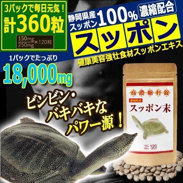 高級国産スッポンエキスで元気復活 高濃縮打錠スッポン末 3パック 計360粒 すっぽん サプリ サプリメント 美容 アミノ酸 スタミナ コラーゲン 静岡原産