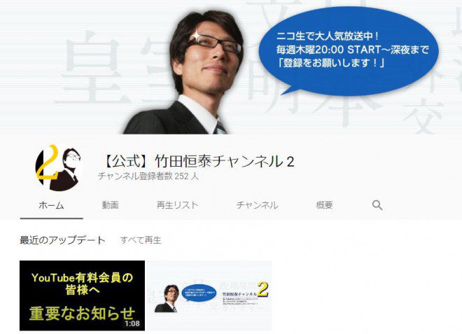 竹田恒泰さん なんj民の通報によって動画を削除されてしまう togetter