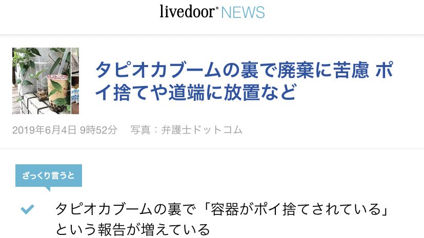 タピオカ容器のポイ捨てが相次ぐ togetter