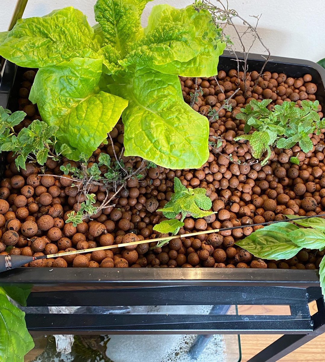 めだかハーブ研究家 on twitter ペットボトルで育てていたパクチーも水槽上に場所変更 ハイドロボールも追加 アクアポニックス 水耕栽培 メダカ パクチー 大葉
