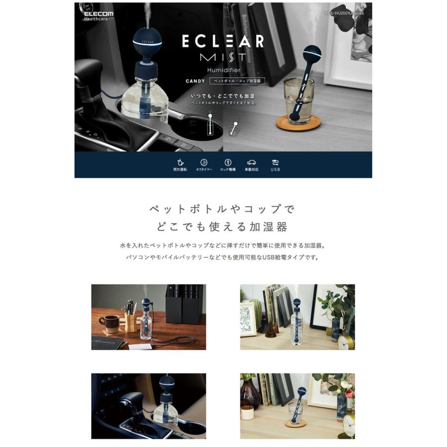 加湿器 ペットボトル usb かわいい おしゃれ エクリアミスト エレコム コップ 卓上 女性 オフィス テレワーク 日本メーカー 安心 簡単 パステル 便利 乾燥対策 hce hu2001u clicktrust クリックトラスト 通販 yahoo ショッピング