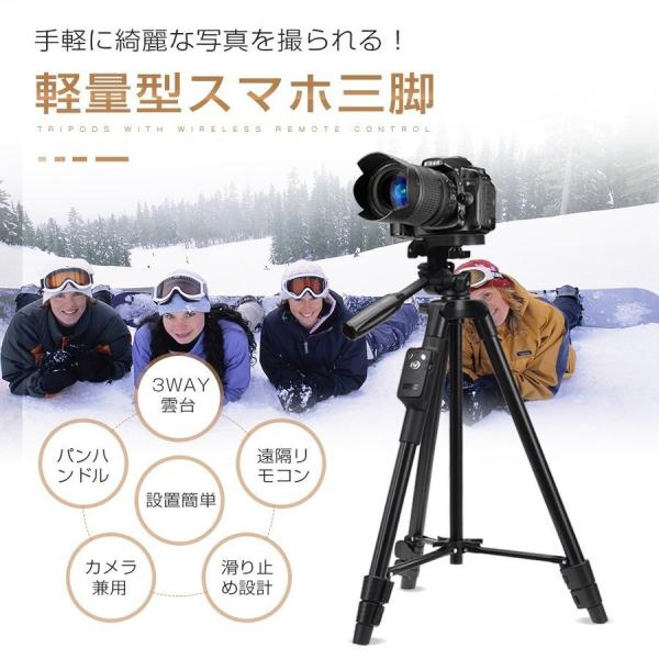 スマホ三脚 三脚 一眼レフカメラ ビデオカメラ 軽量 ミニ 4段階伸縮 360度回転 3way雲台 アルミ製 コンパクト 収納袋付き bluetoothリモコン iphone android対応