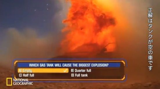 ガソリンの量が違う車の燃料タンクに火をつけた時 大爆発を起こすのはどれか a 空っぽ b 4分の1 c 半分 d 満タン お前らどれだと思う オレ的ゲーム速報 刃