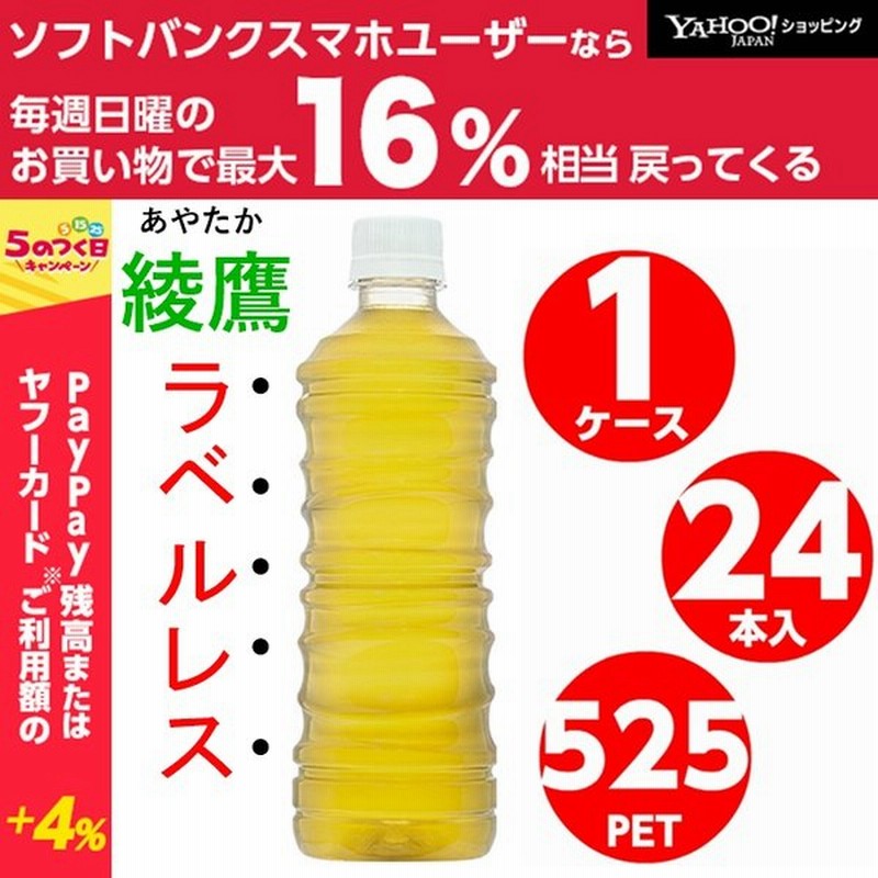 ラベルレス 綾鷹 525ml 24本入1ケースお茶 緑茶 pet ペットボトル eco コカ コーラ社メーカー直送 送料無料