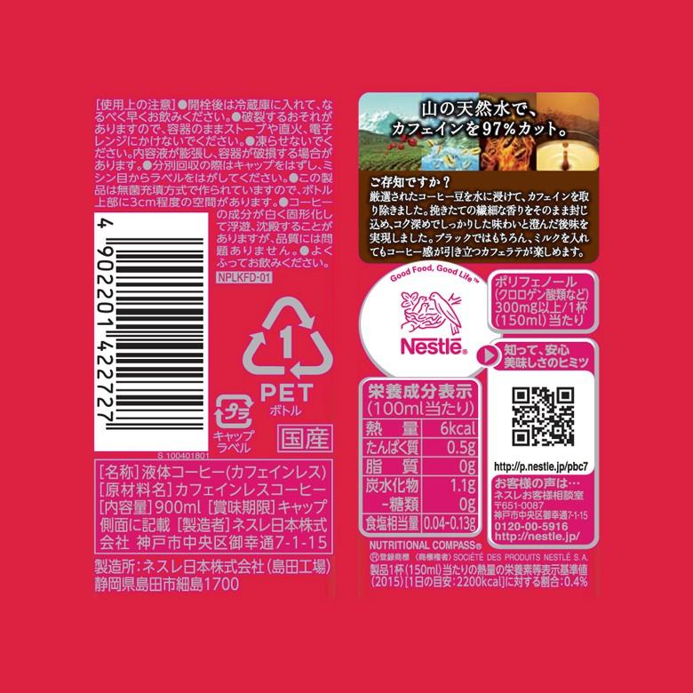 ネスカフェ エクセラ ボトルコーヒー 無糖 900ml 12本