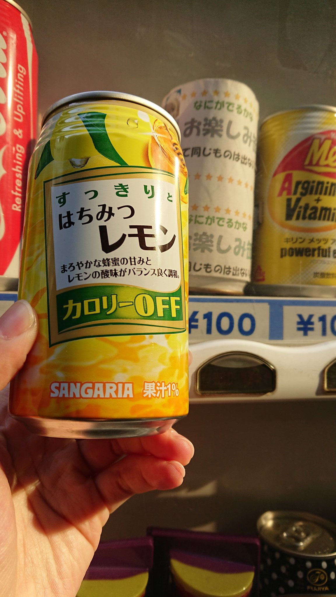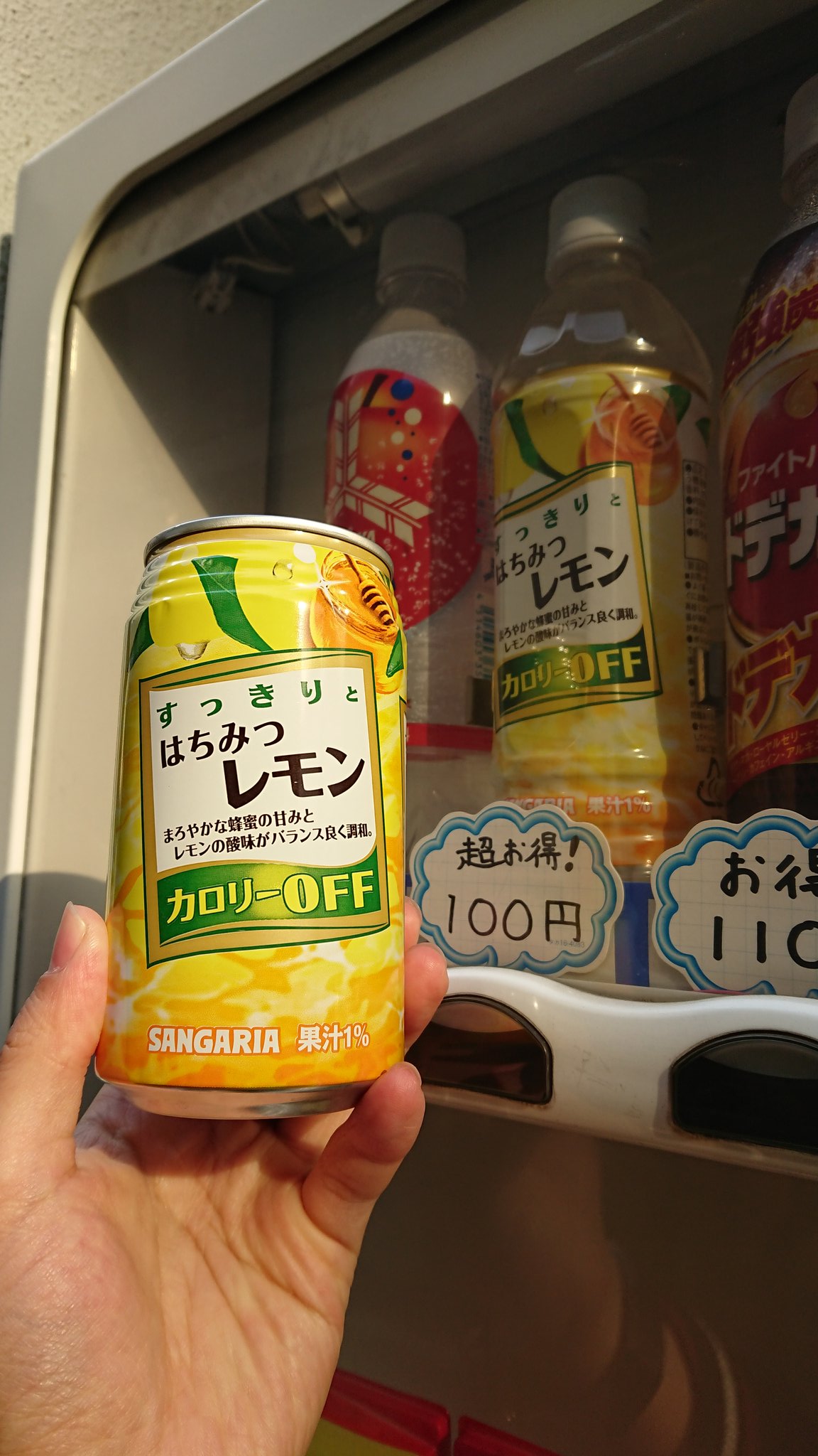 おすぎさん on twitter 赤塚酒店のお楽しみ缶チャレンジ 今日はサンガリアのはちみつレモンが出た akiba 隣の自販機に同じ値段で ペットボトルが売ってるらしくて損したわ って思ったけど寒いので小さいサイズで十分だった
