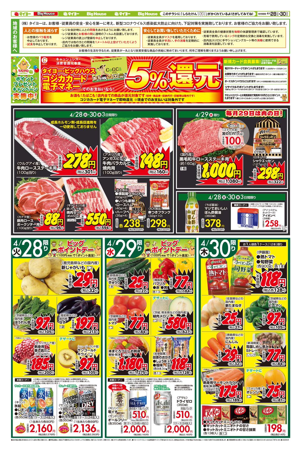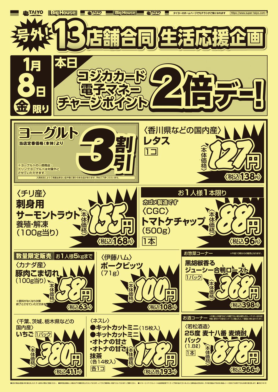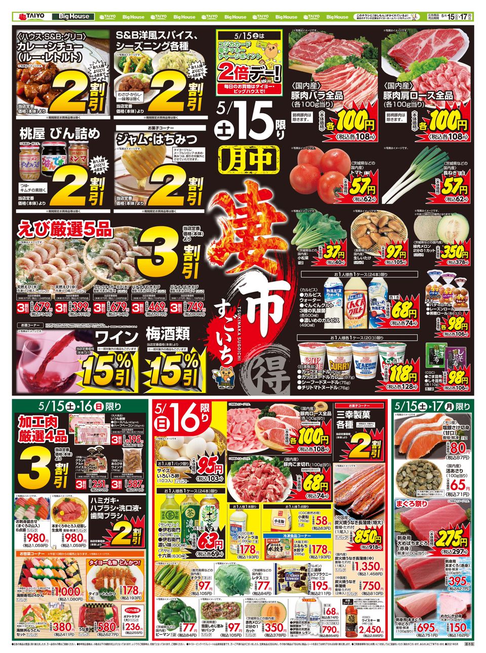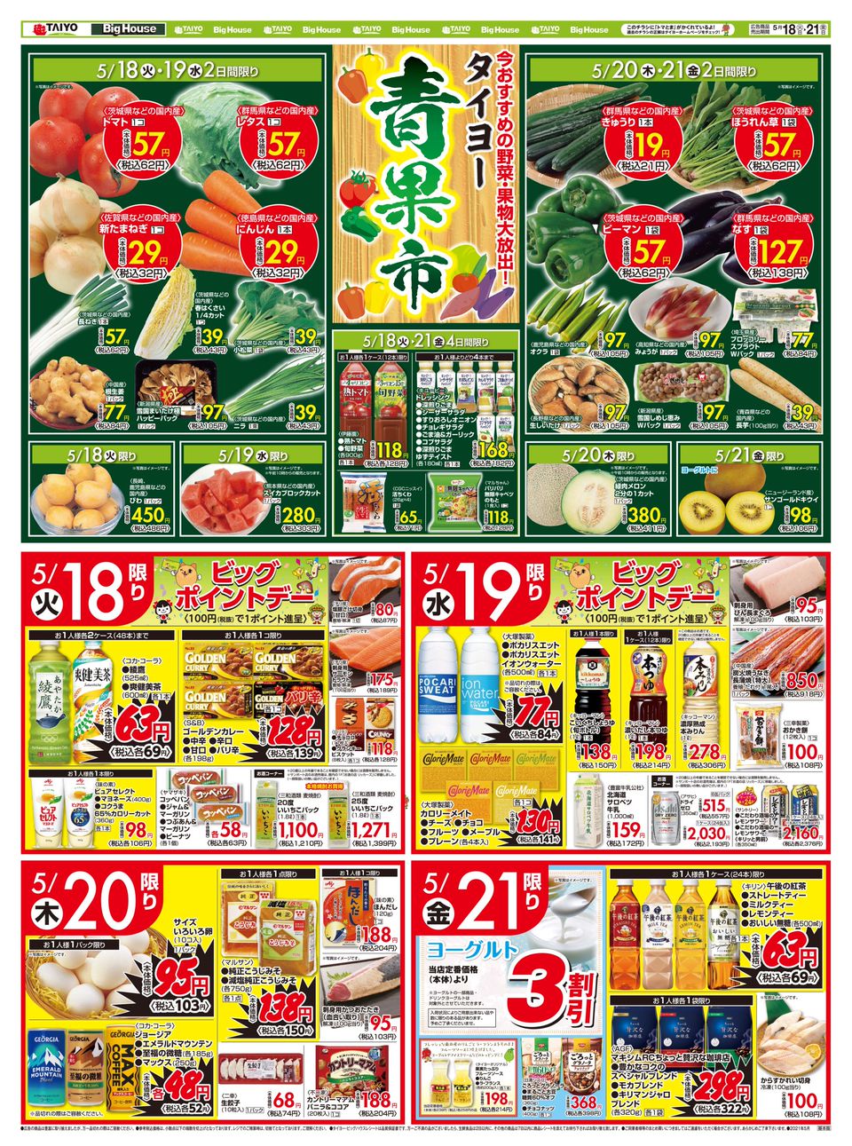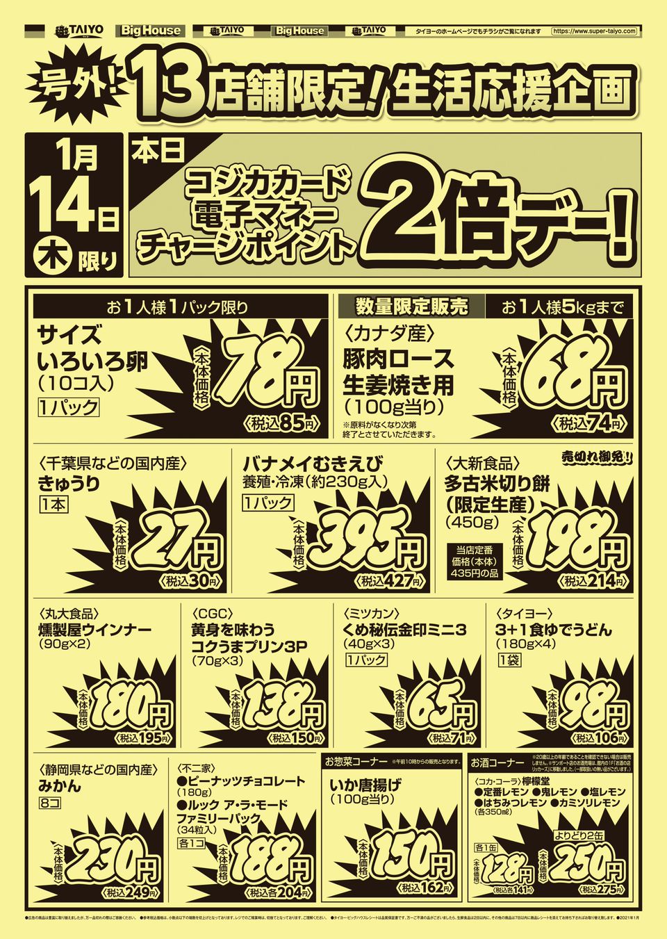 スーパーマーケット bighouse は飲料缶 ペットボトル 段ボール回収がタイヨーのポイントに 500ポイントで500円のお買い物券と交換 印西とぴっく
