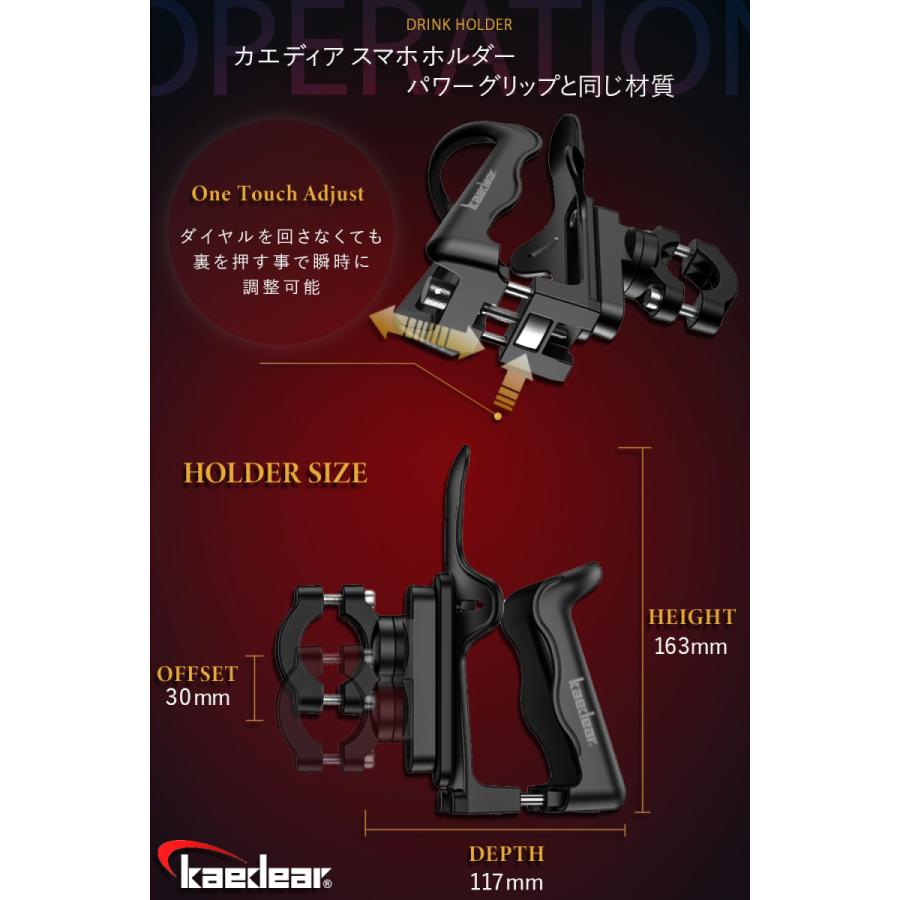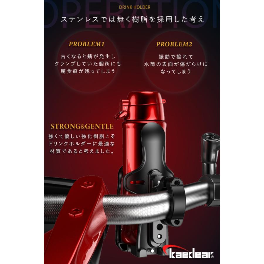 kaedear カエディア バイク ドリンクホルダー 自転車 ボトルホルダー ペットボトル 飲み物 置き 入れ スタンド カップホルダー バー クランプ オートバイ 原付 スクーター スポーツ アメリカン バイク用品 株式会社 kaedear