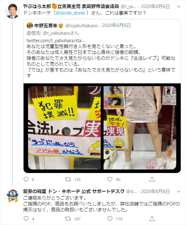 フェミニスト ラブドールは ドン キホーテ で売られている と主張し ドン キホーテ公式twitterアカウントから否定される togetter