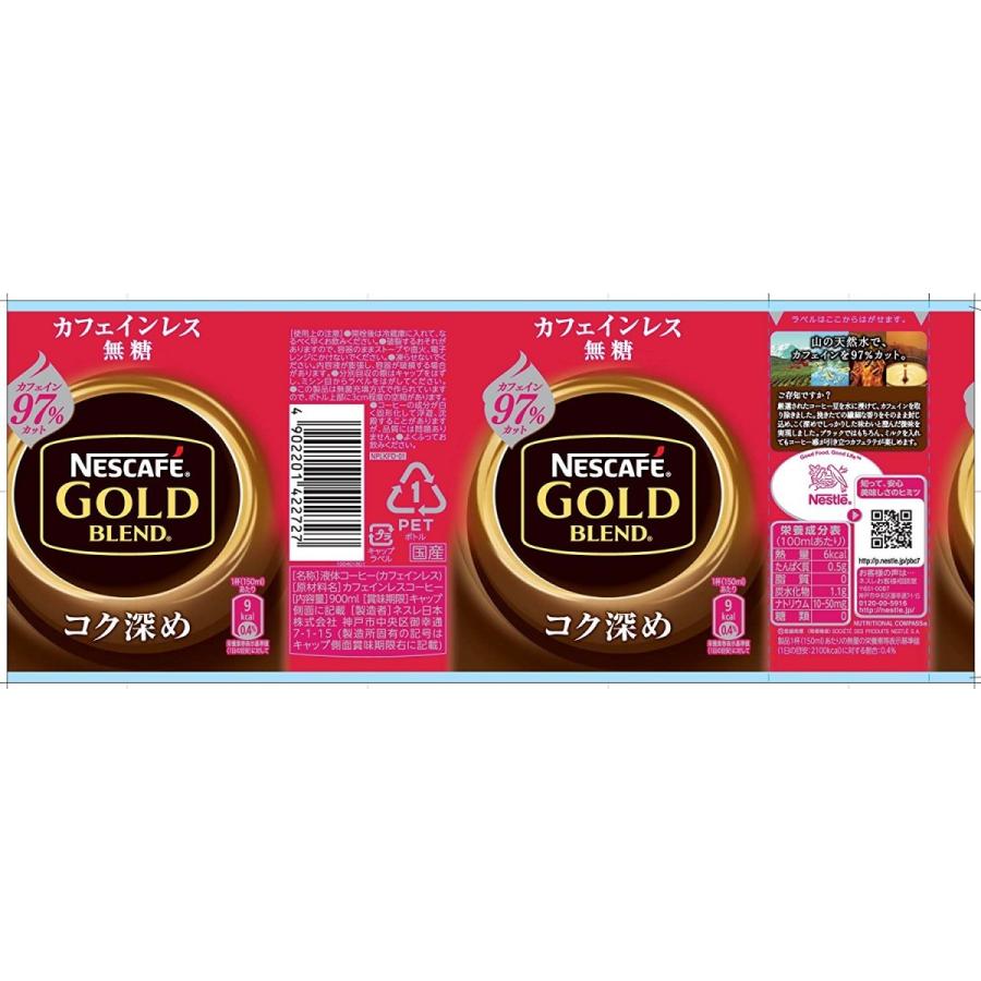 ネスカフェ ゴールドブレンド コク深め ボトルコーヒー カフェインレス 無糖 900ml 12本 ペットボトル