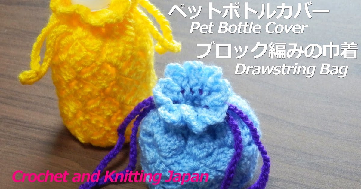 かぎ編み crochet japan クロッシェジャパン ブロック編みの巾着 ペットボトルカバー かぎ針編み 編み図 字幕解説 drawstring bag pet bottle cover crochet and knitting japan