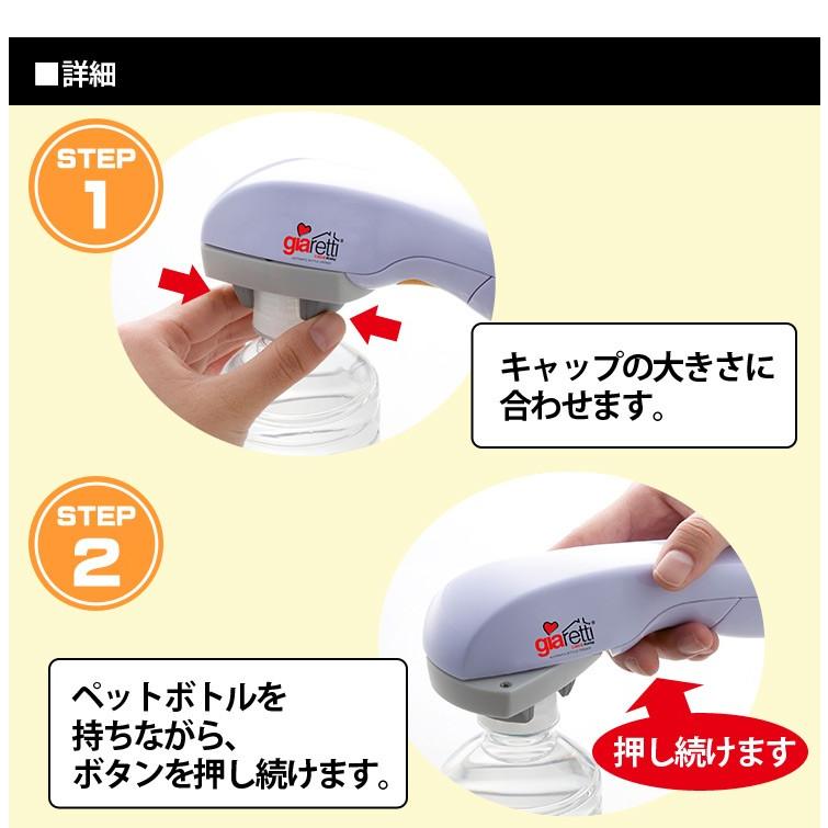 自動ペットボトルオープナー キャップ 蓋 電動 全自動 ビン ボトル 爪 持ち運び 軽量 家事 ジアレッティ giaretti 電池式 シニア 高齢 子供 ハンズフリー ワンタッチ クオリアル 暮らし応援家具shop