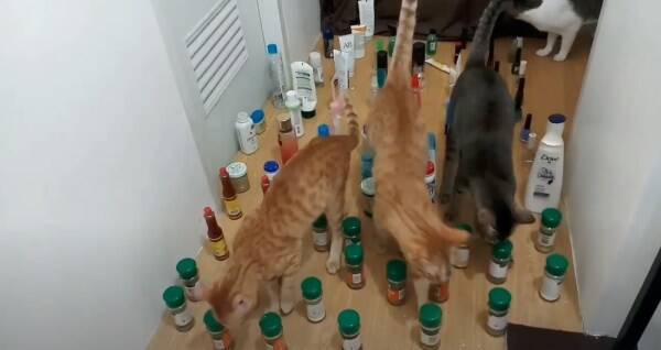 猫によるボトルキャップチャレンジ大成功 隣の猫も驚きの顔 猫ジャーナル