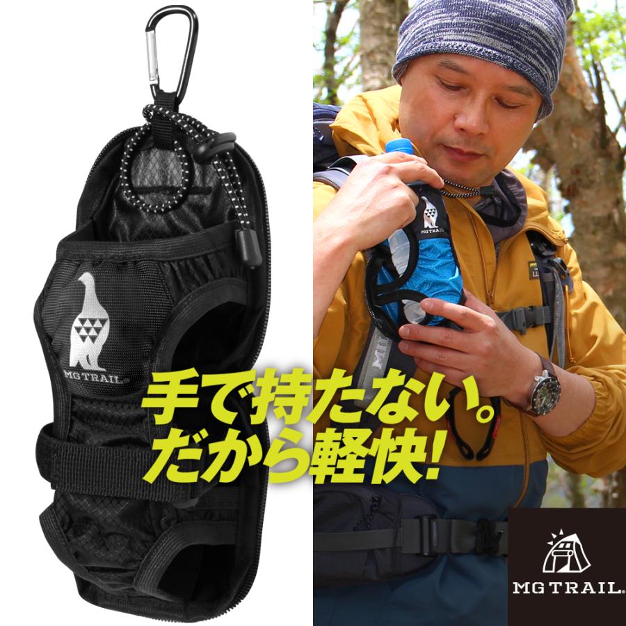 ペットボトルホルダーカバーver 2 0 mgtrail 登山リュックベルトに装着ケージポケットに入るドリンクホルダー水筒ウォーターボトル折りたたみ傘も収納可 ブラック