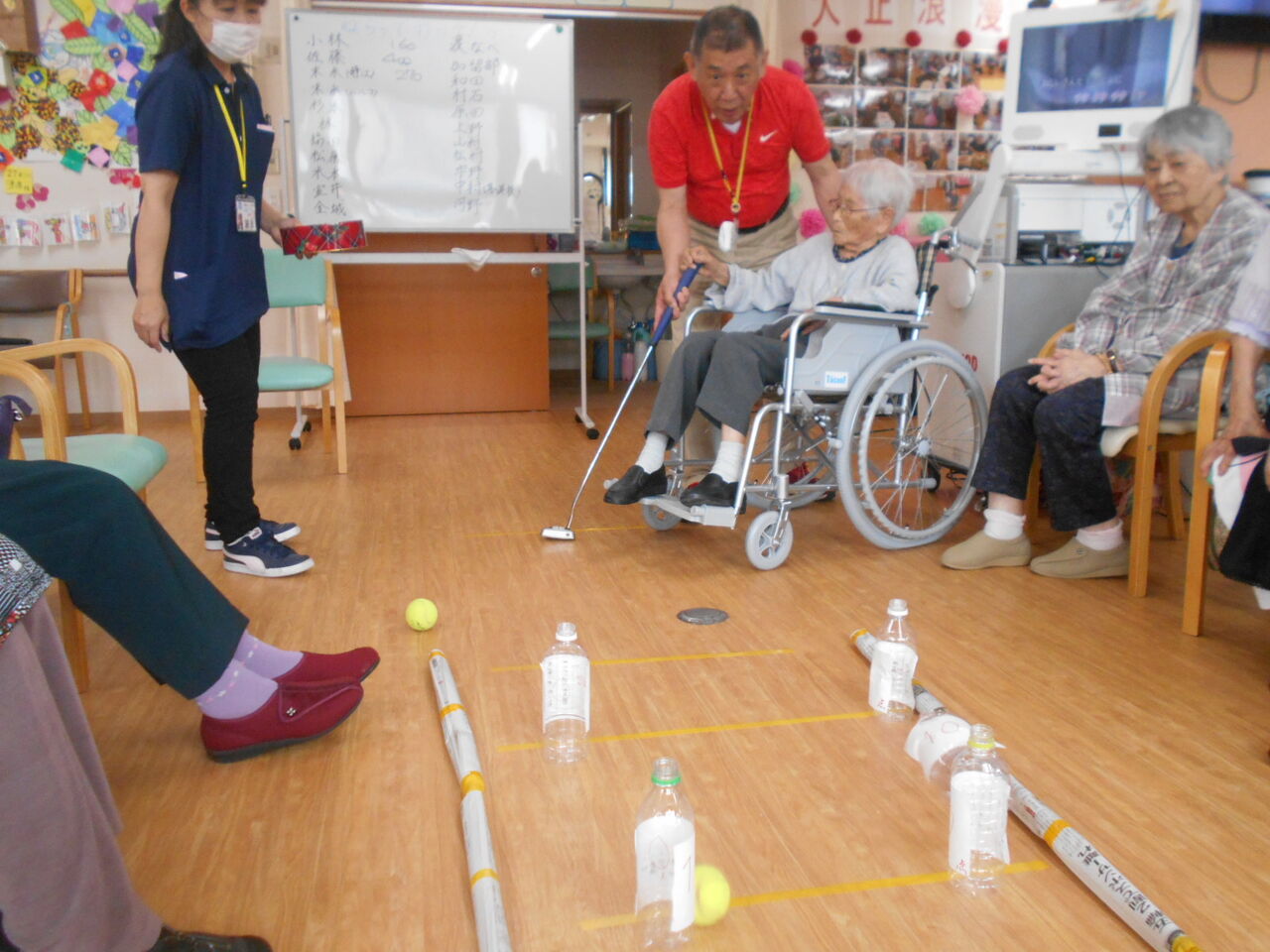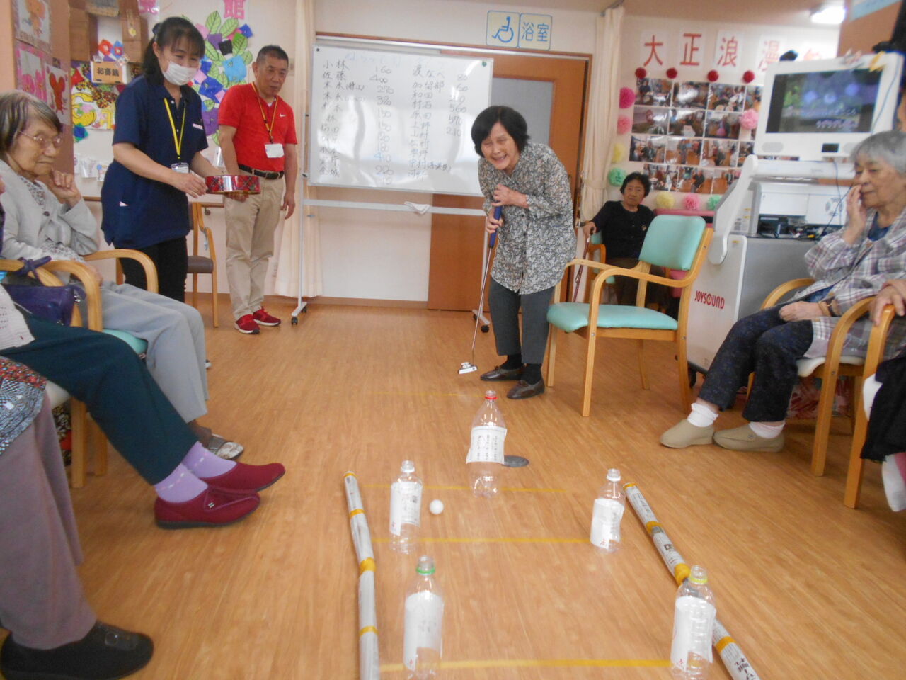 ペットボトル倒すぞゲーム デイサービスセンター大正浪漫館 さわやか 日記