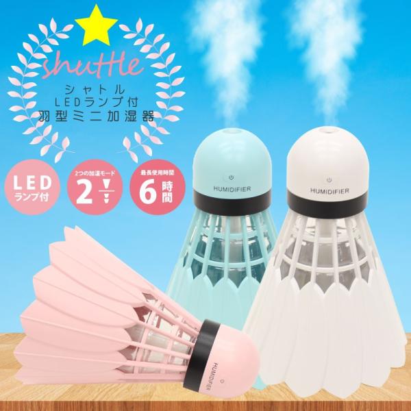 加湿器 ledランプ付き羽型加湿器 シャトル 卓上 おしゃれ 静音 小型 ナチュラル 乾燥対策 加湿 潤い 保湿