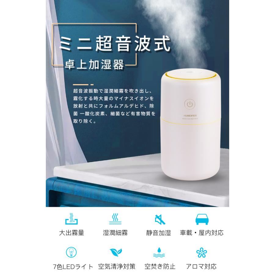 加湿器 卓上 超音波式 usb 大容量 250ml 2019進化版 除菌 7色ledライト 静か 空気浄化機 持ち運び便利 ペットボトル 小型 空気浄化機 空焚き防止 節電 省エネ 車用加湿器 部屋 オフィス 乾燥 花粉症対策