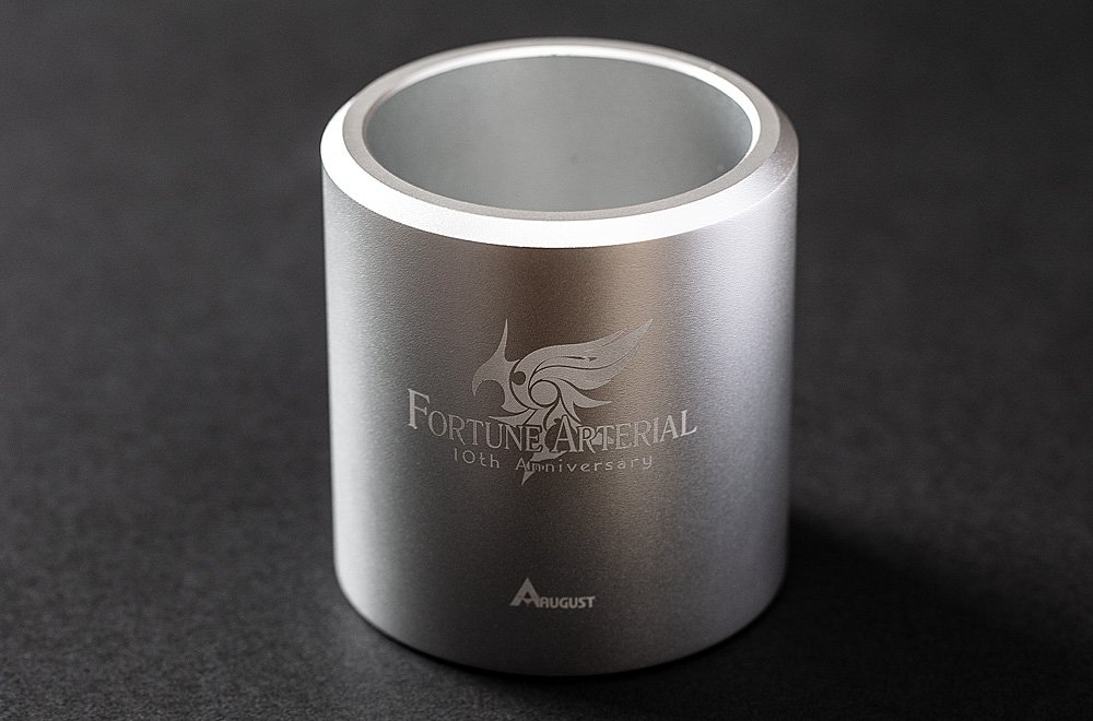 オーガスト on twitter 夏コミグッズの紹介です グッズ6つ目は fortune arterial 10周年記念メタルポット アルマイト加工済アルミニウム製で 鍵や眼鏡などの小物入れ ペン立て ペットボトル転倒防止ホルダーなど様々な使い方ができます https t co