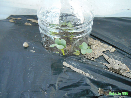 ペットボトルキャップを外したよ 嬉しい発芽 enjoy in 菜園