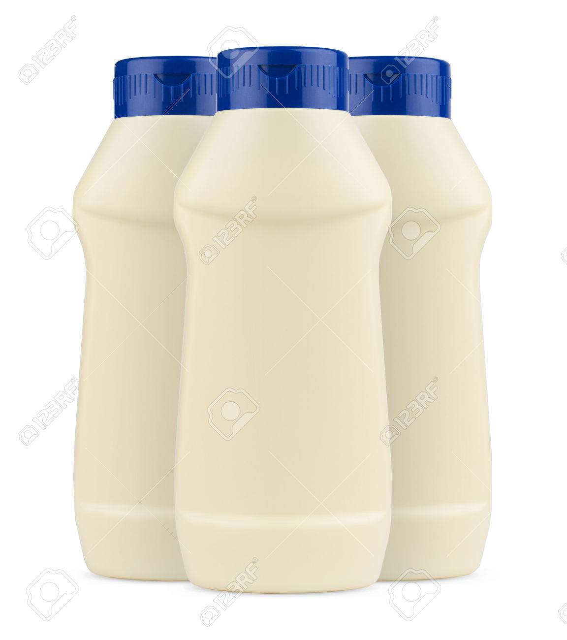 ミネラルウォーターのペットボトルのセットです ミネラル水で満たされたボトル ブルー キャップがグレー ブルーとライトブルーの色で