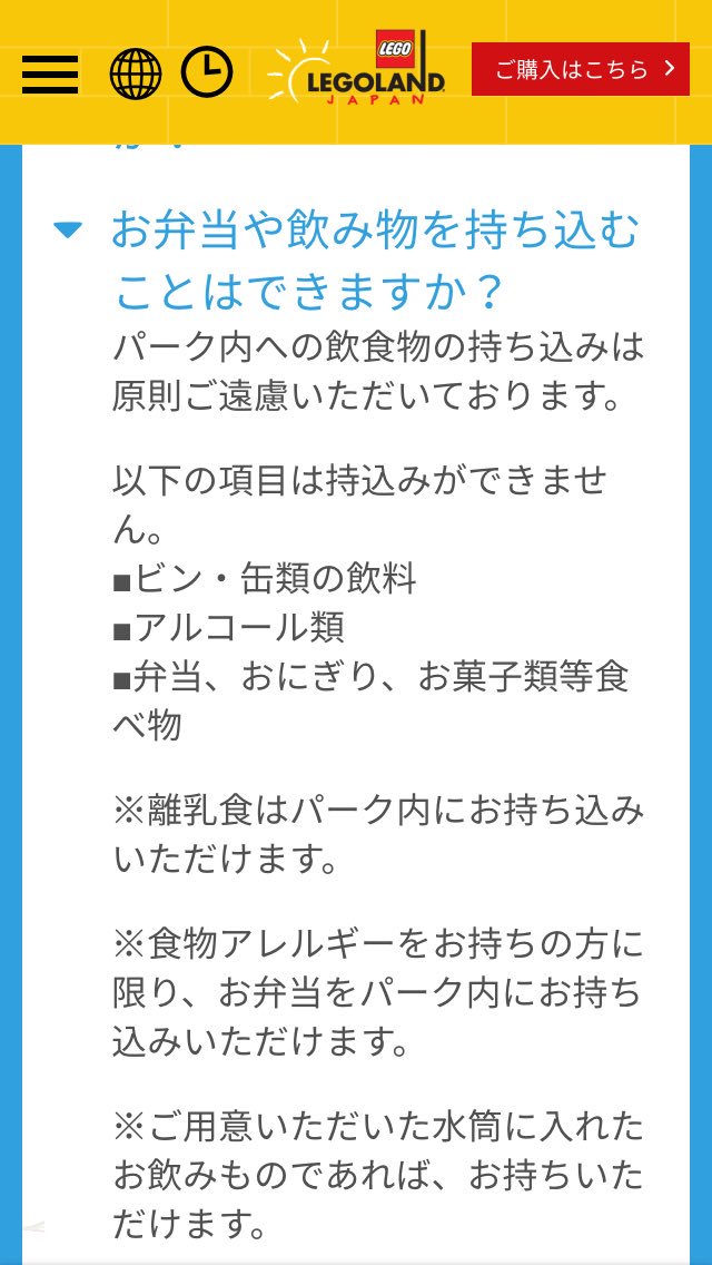 レゴランドの食事持ち込みはng 離乳食 アレルギーの場合のみok レゴがすき