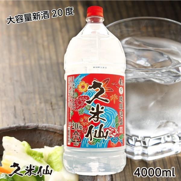 送料無料 大容量 久米仙泡盛 20度 4リットル入ペットボトル4本セット 大容量でお得 まとめ買いや大人数での宴会に 沖縄 泡盛 焼酎