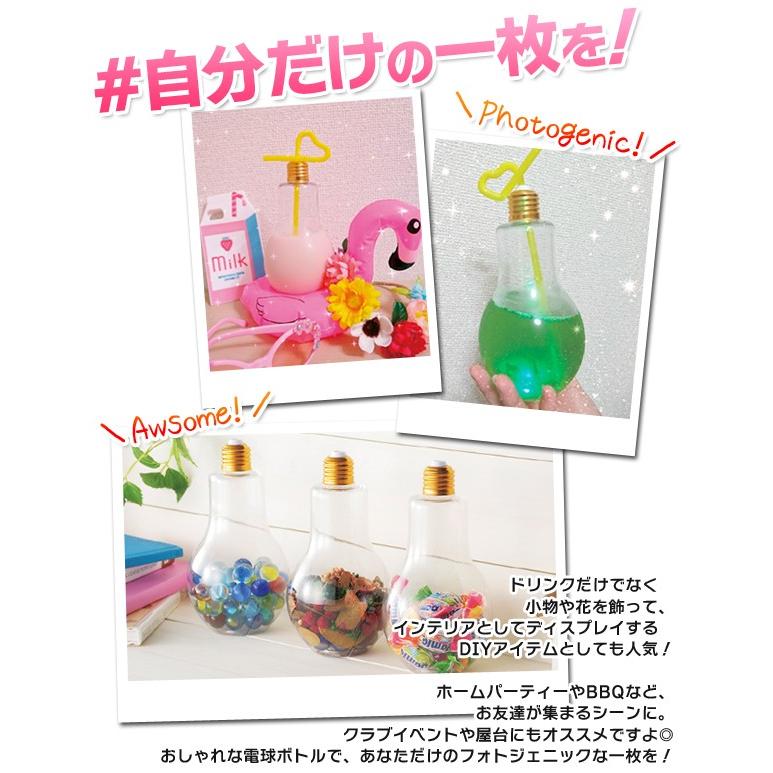 光るペットボトル 500ml 曲がるストロー付 電球型 おしゃれ 携帯ボトル 3色ledライト付 ピカピカ光る カラフル 割れない水筒 点灯切替え お祭り ボトルdenkyu 20180129 denb i shop7 通販 yahoo ショッピング