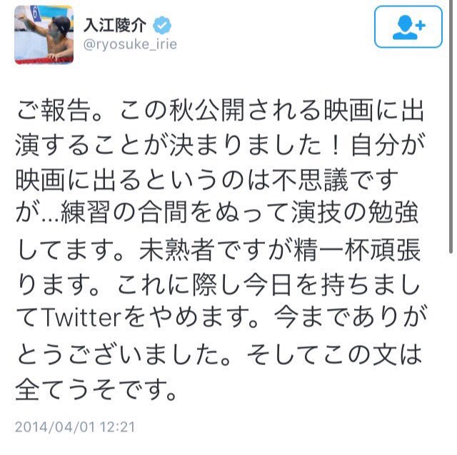 水泳 入江陵介選手が自らの4年間のエイプリルフールをまとめてみた 本人がまとめるんかい ナイスセンスすぎる togetter