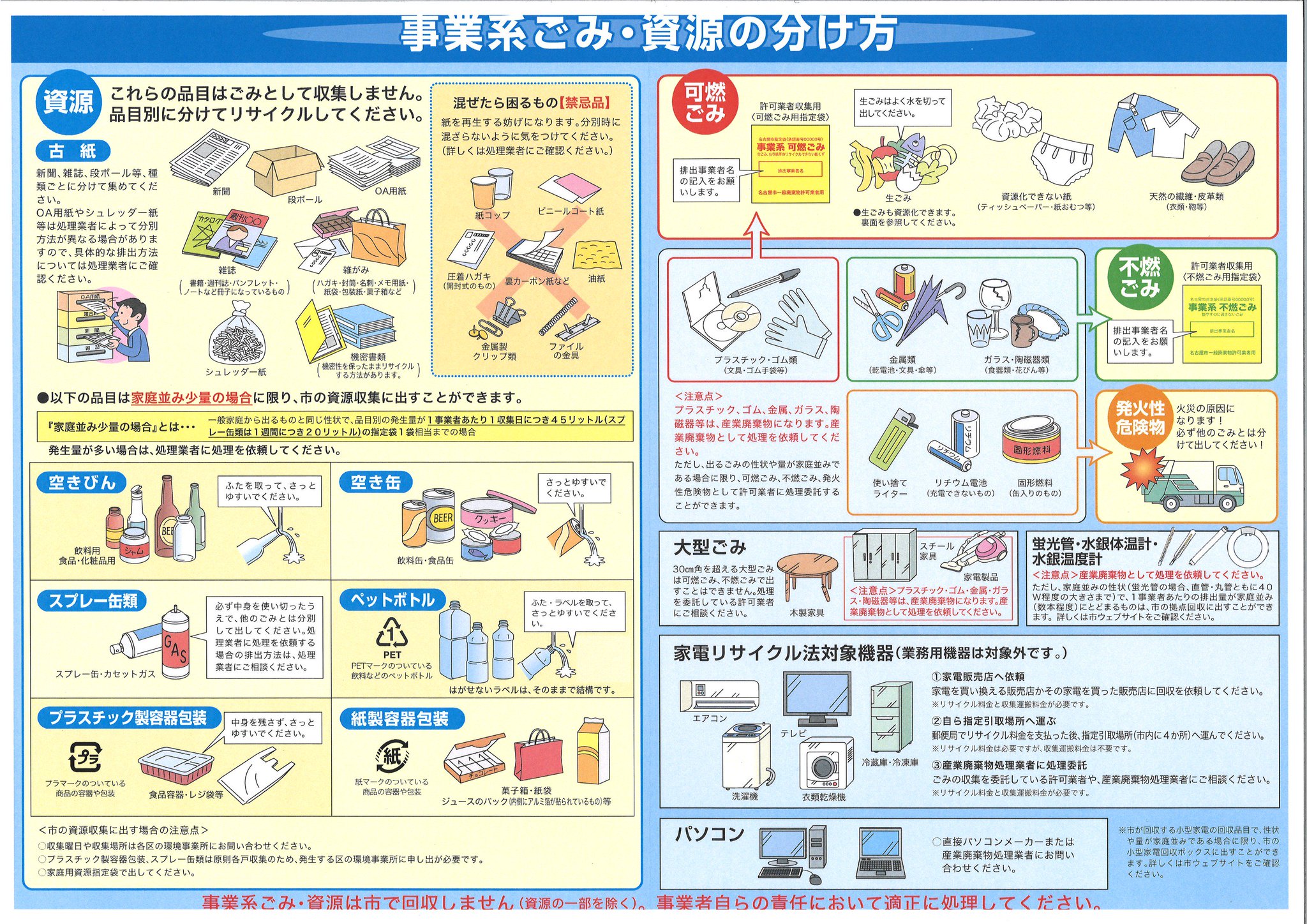 名古屋リサイクル 株 no twitter おはようございます 名古屋リサイクルは土曜日も通常どうり営業しております 一般事業系ごみの分別のお問合わせが日々多くあります 事業活動から出るごみは少量でも市では回収できません 詳しくは名古屋市の分別方法を再度ご