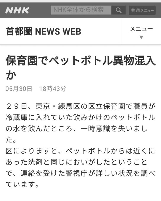 異物混入で意識失う 事件 事故 東京 練馬区の保育園