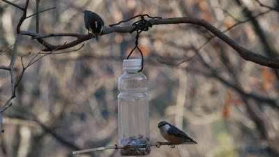 ペットボトルで野鳥の餌台