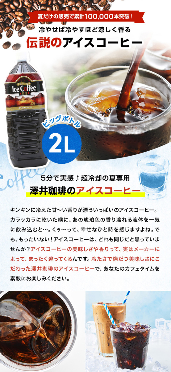 コーヒー アイスコーヒー ペットボトル 送料無料 限界価格 超冷却の夏専用 2000ml 6本 セット グルメ 澤井珈琲 通販 paypayモール