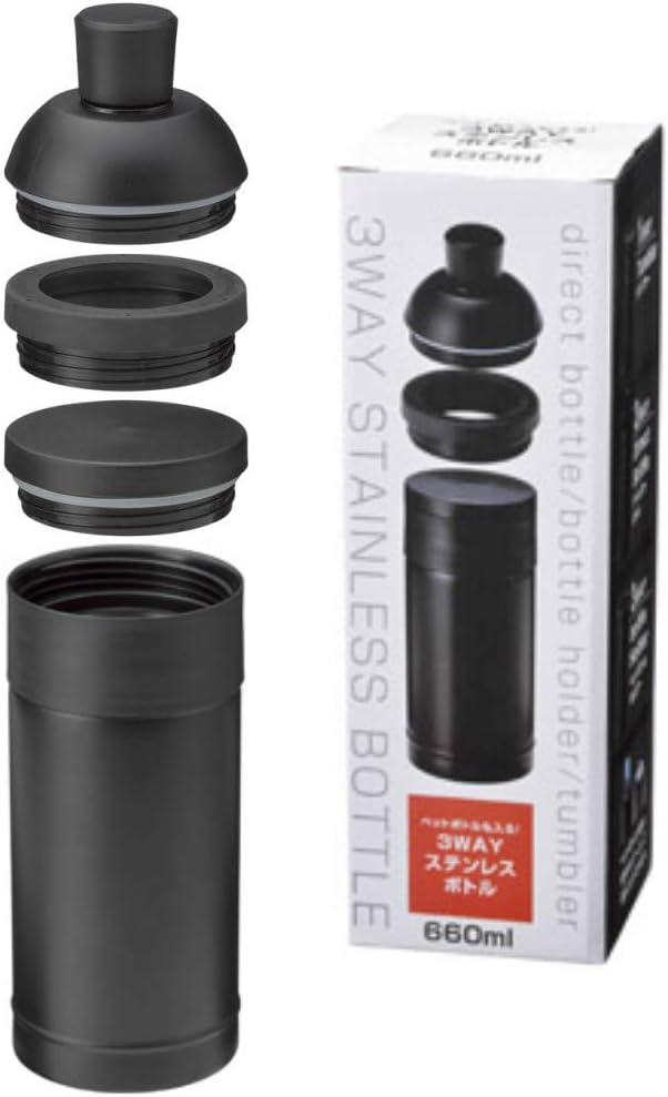 楽天市場 缶 ペットボトルを保冷保温 真空2層 ステンレスボトル ブラック 500ml缶 petボトル そのままマグボトルの3way利用が可能 31705 丸辰 ペットボトルも入る 3wayステンレスボトル600ml 送料無料 qザッカ