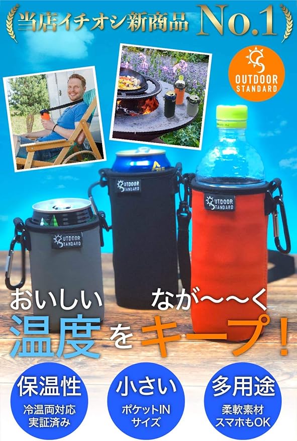 amazon outdoorstandard 缶ホルダー ペットボトルホルダー スマホホルダー キャンプ用品 アウトドア 保温 保冷 ネオプレーン グレー ペットボトル 500ml缶用 水筒 マグボトル用アクセサリー オンライン通販