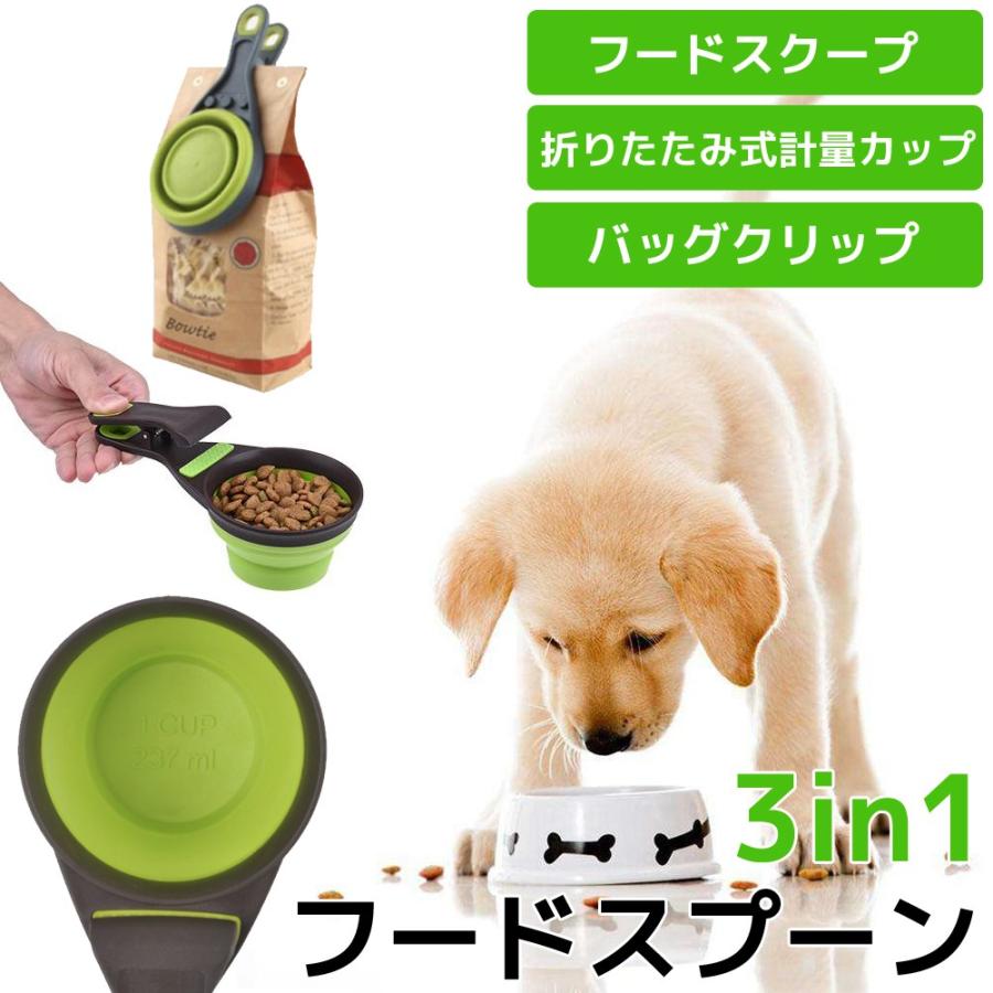 greenmakes ドッグフード スプーン ホルダー 計量スコップ 犬 フードスプーン ペットボウル クリップ付き 多機能 グリーン