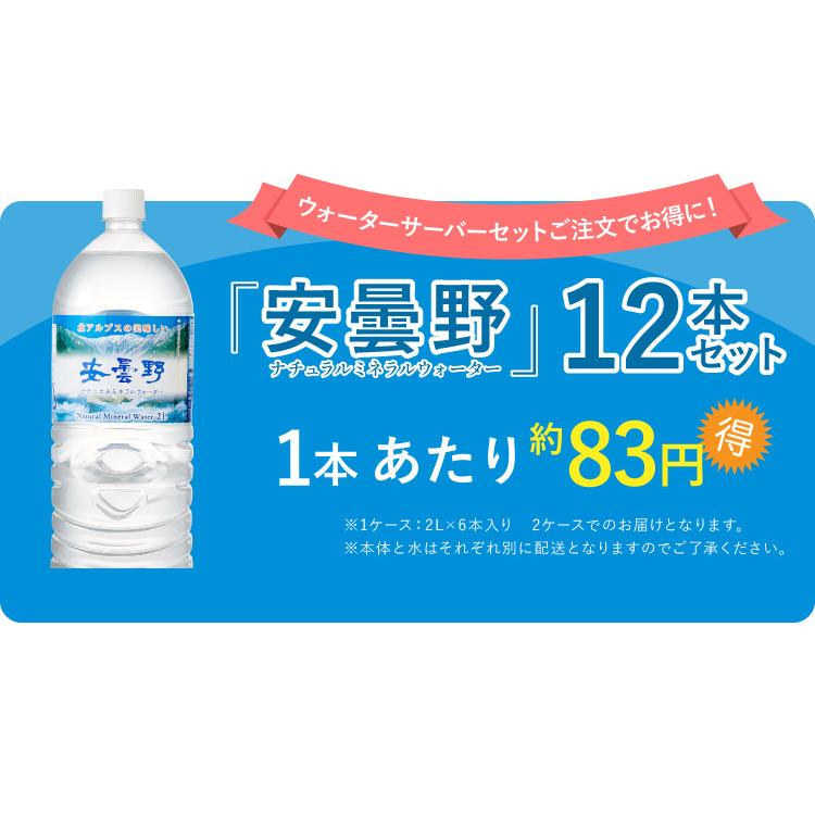 卓上 ウォーターサーバー 安曇野ミネラルウォーター 2l 12本セット ペットボトル対応 プッシュ式 温水 冷水 ロック付き