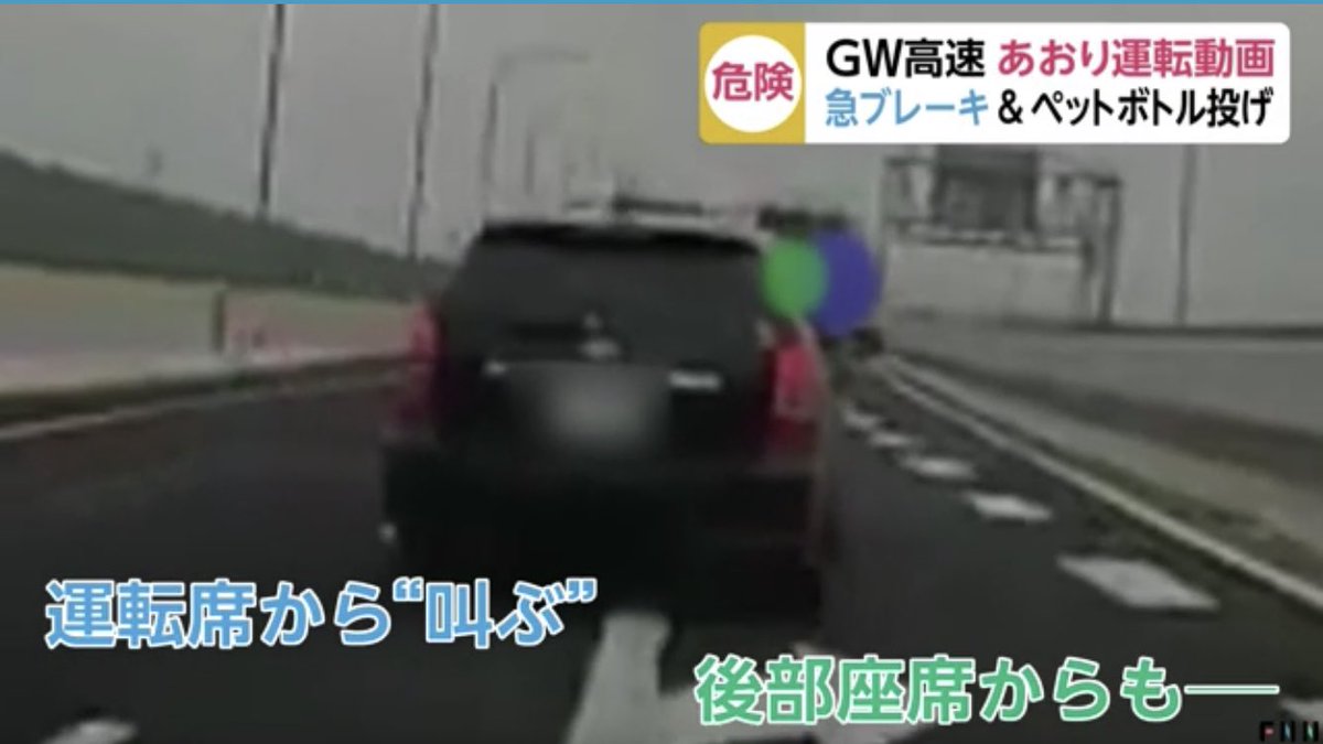 名古屋高速で あおり運転 に急ブレーキ 更にペットボトルを投げつけるも警察は厳重注意で済ます