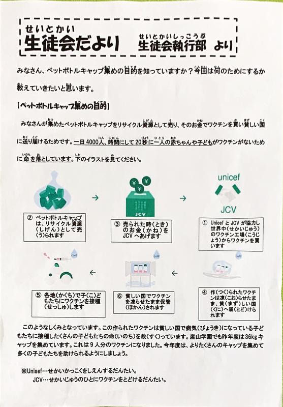 生徒会ペットボトルキャップ回収活動 毎日岩中